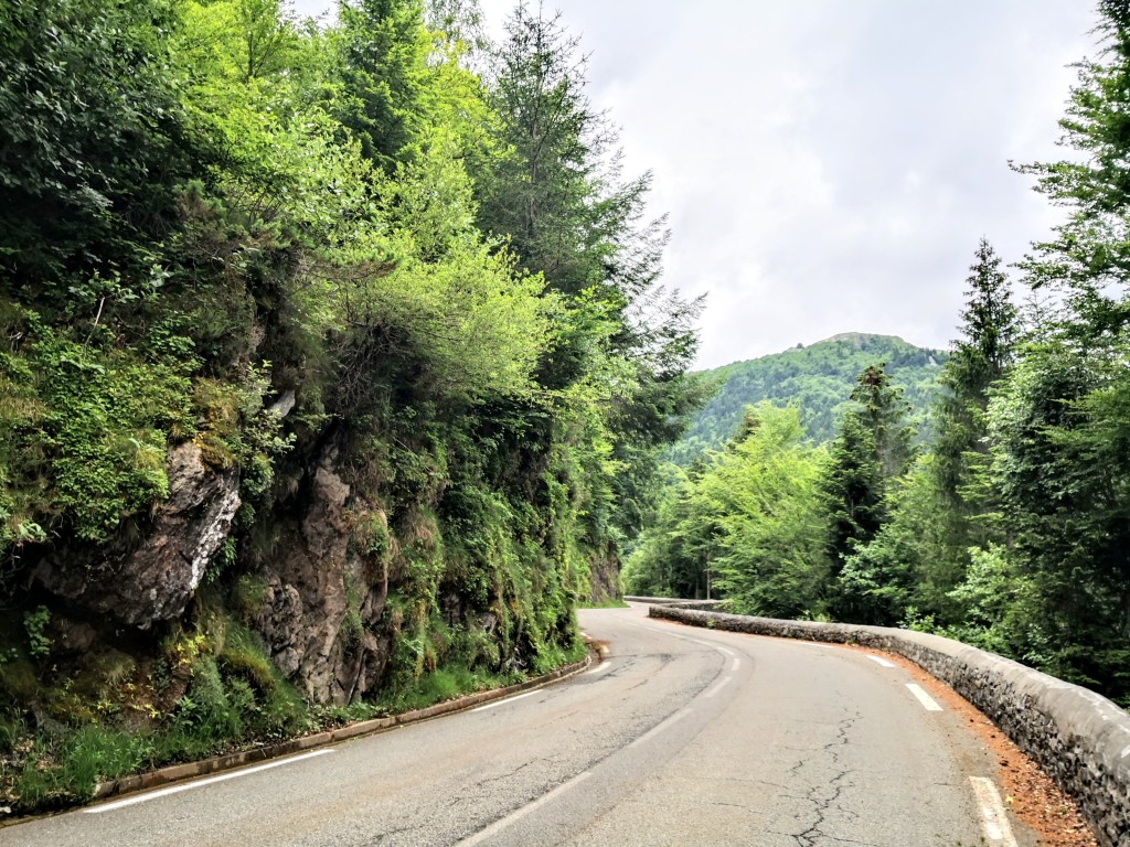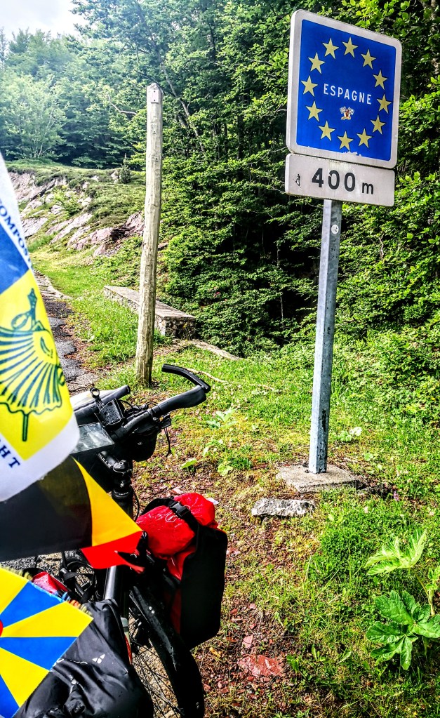 Zoals verwacht moet ik tijdens de beklimming vele stukken stappen met de fiets aan mijn zij. Vele gedeelten zijn echter beschermd door schaduw. Aan de Franse zijde van de berg is het wegens meer regen groener dan aan de Spaanse kant die blijkbaar meer dor is. Er is gelukkig ook weinig wegverkeer. Dit verzacht het ” stille fietslijden”.