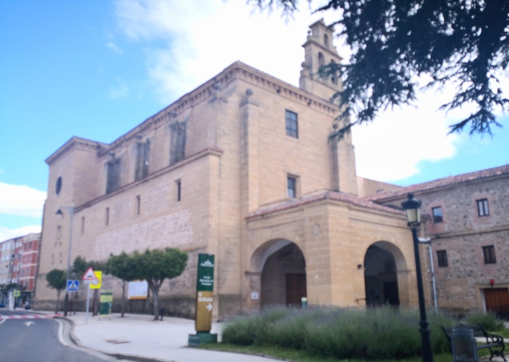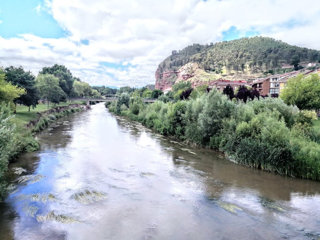 In Nãjera houden we even halt op de brug over de Rio Najerilla en hebben we zicht op de oude stad tegen een indrukwekkende achtergrond van roodbruine rotsen met vele grotten en waar vele koningen van Navarra in het mausoleum begraven liggen.