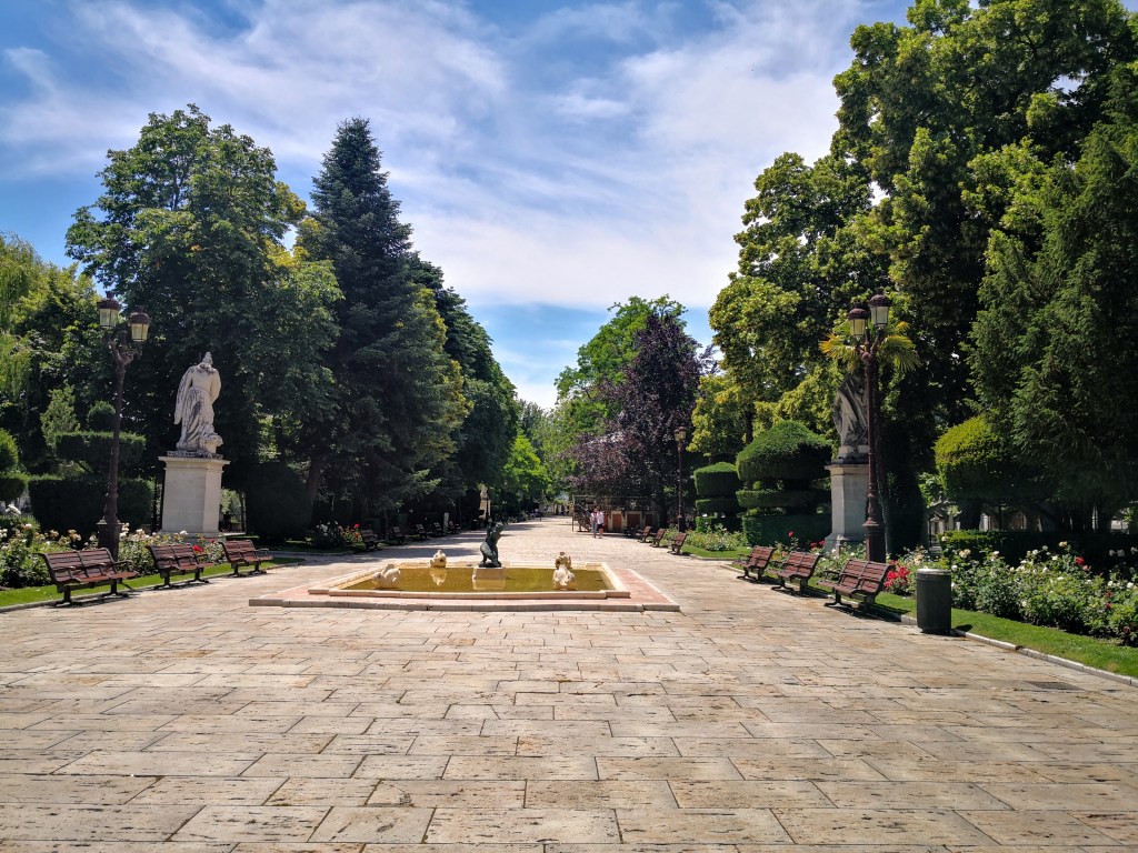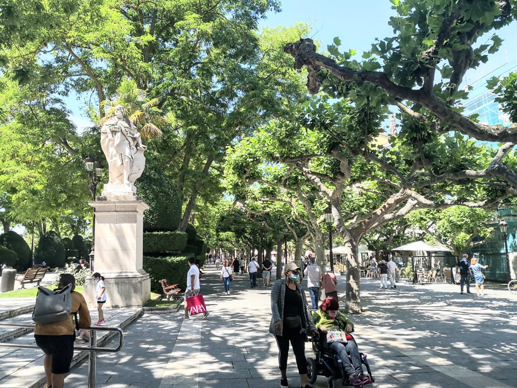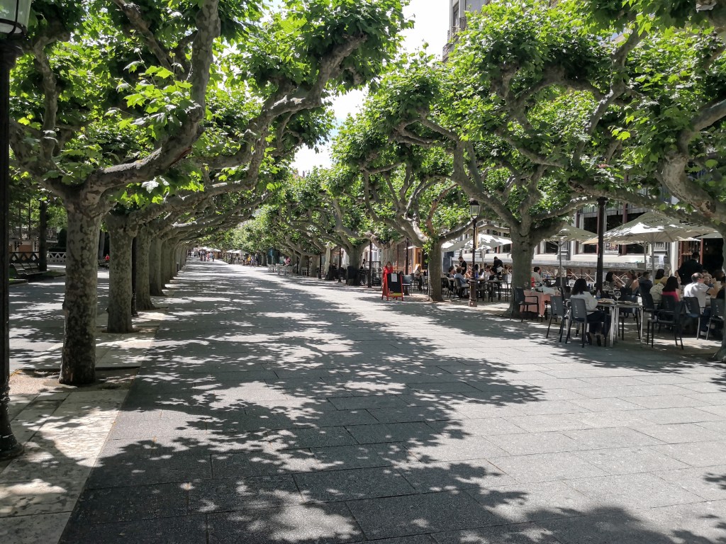 Vandaar wandel ik langs de rivier de Rio Arlonzón, door lanen met overwegend overwelvende plantanen die de wandelaars schaduw en geborgenheid geven. Paseo del Espolón, de gemeenschapstuin van Burgos