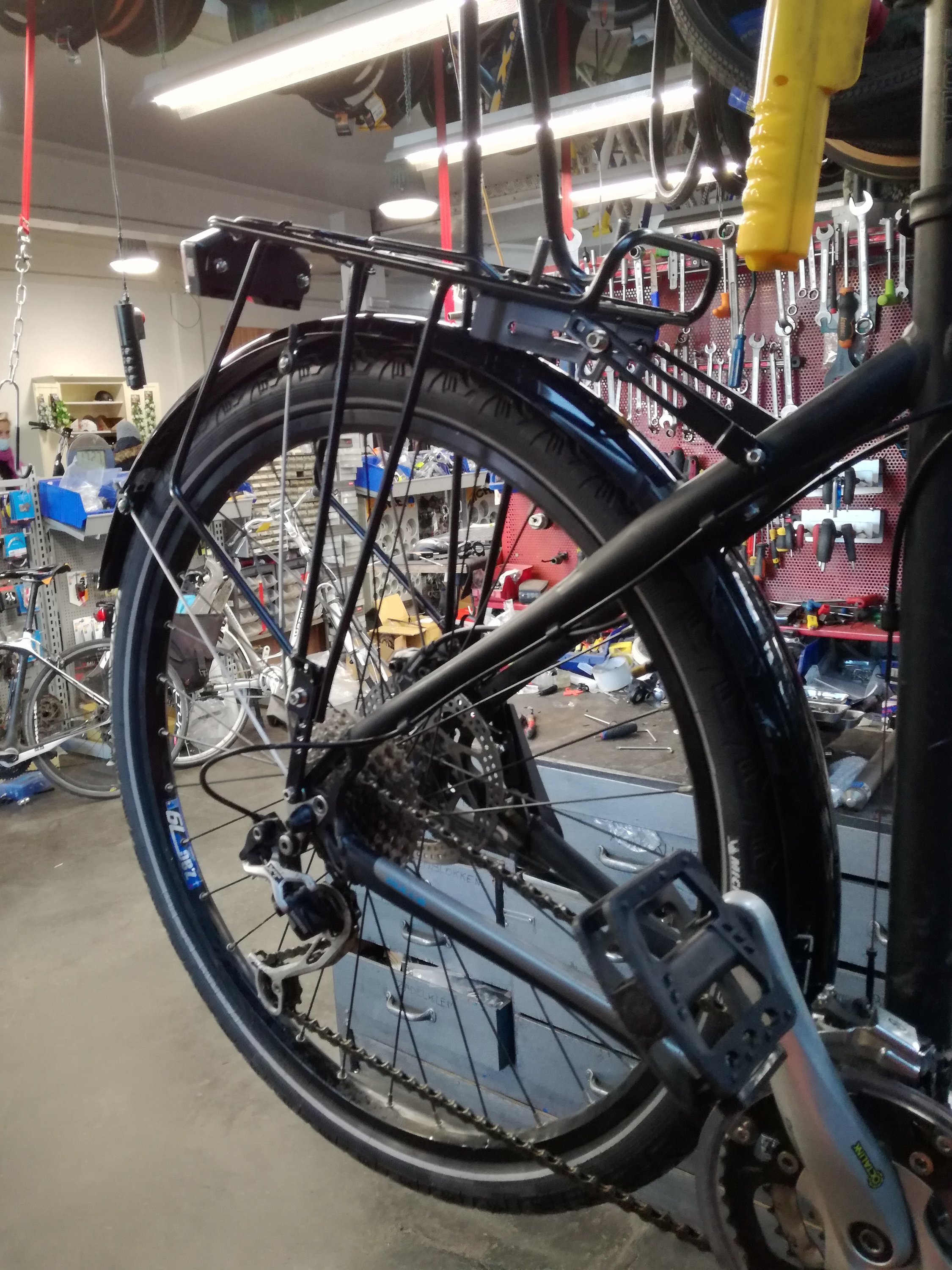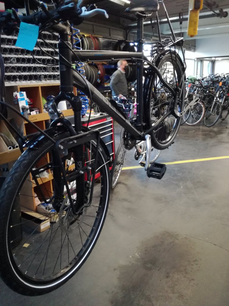 Het was als basis een zeer goede tweedehands mountainbike echter met nodige upgrades, zoals bagagedragers, spatborden, aangepast zadel en vernieuwde banden en binnenbanden. Alsook aangepaste trappers en aanvullende stuurhandgrepen. Nu een paar weken testen en dan verder bijsturen/aanpassen waar nodig.