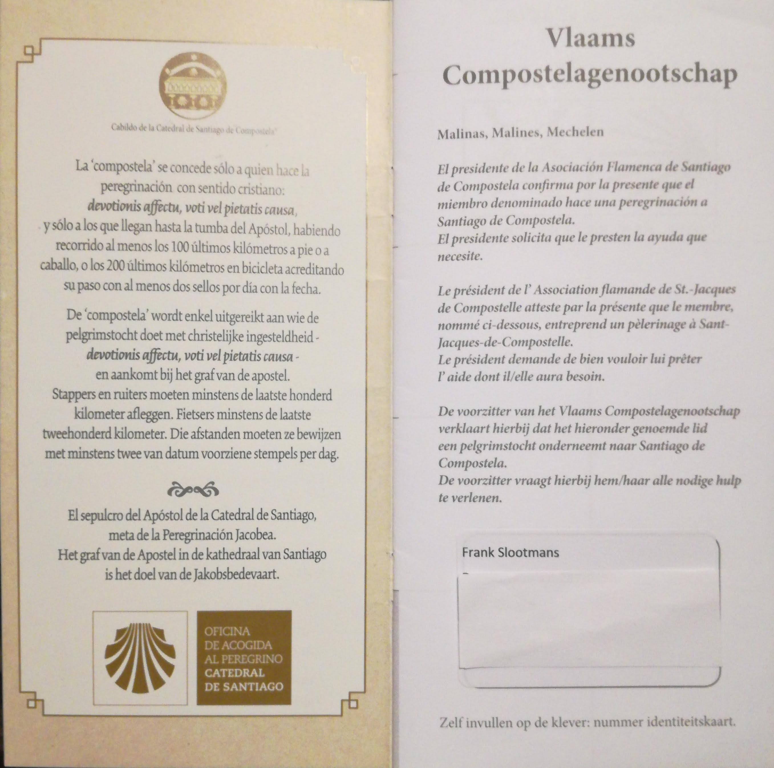 Beide documenten zijn nodig om erkend te zijn als pelgrim en toegang te krijgen tot de diverse albergues en finaal, na de nodige stempels onderweg, in Santiago, recht te hebben op het getuigschrift “Compostela”.