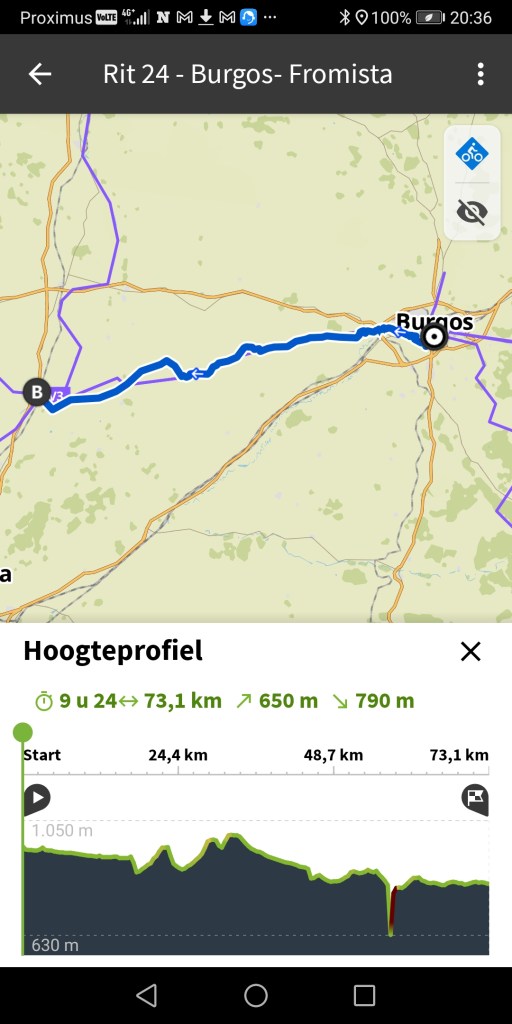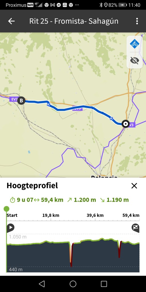 Ik volg voornamelijk de Caminoroute en doorkruist Tardajos, Rabé de las Calzadas, Hornillos del Camino, Hontanas, Castrojeriz, Itero de la Vega, Boadilla del Camino. Het is niet steeds comfortabel fietsen over de hobbelige gravelwegen, maar tussendoor wat dichter bij de stappers zijn motiveert me. Ben anders erg alleen onderweg en zo voel ik toch verbondenheid. Al is het maar een simpele groet “Buenos Camino”.
