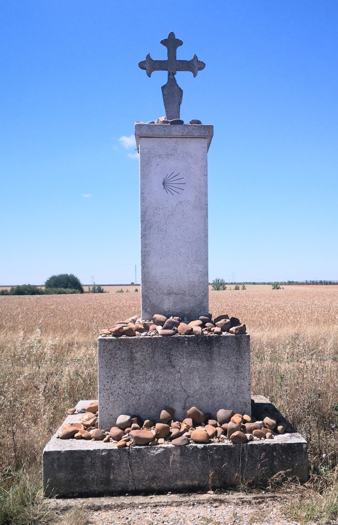 We zetten onze tocht, door de hoogvlakte Tierra de Campos, verder. Een eindeloos landschap met glooiende graanvelden. Nietige fietsers en stappers in deze enorme golvende vlakten. Een frisse westenwind fluit een deuntje in mijn oren. Stille dorpjes met weinig voorzieningen testen onze paraatheid.