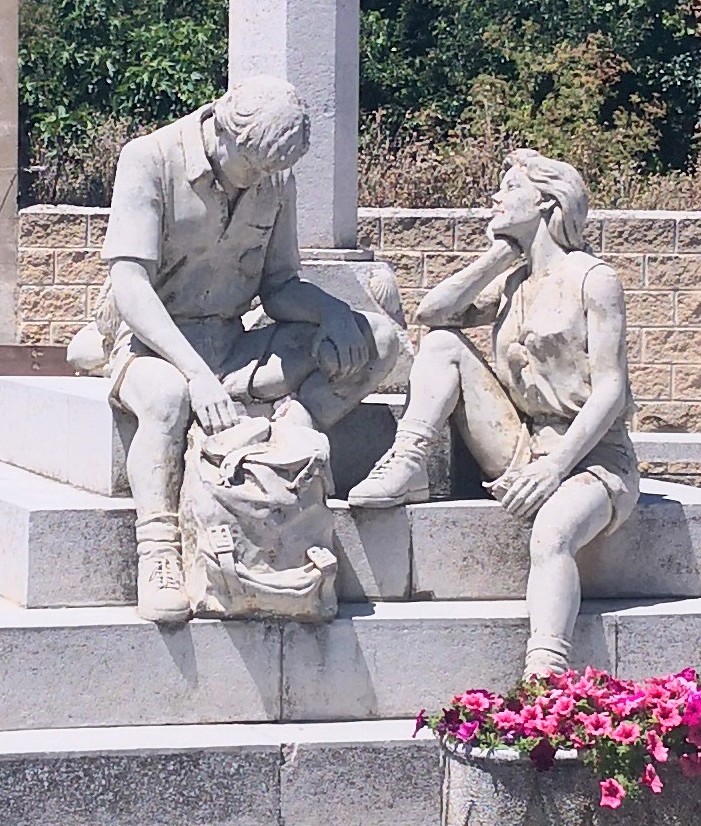 Voor ik start met de beklimming van de laatste col Alto de Poio, hou ik even halt aan het Pelgrimmonument gericht naar Santiago. Ideale plek om even tot rust te komen.