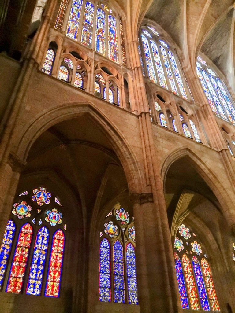De Kathedraal zuigt alle aandacht naar zich toe. Stralend imposant bouwwerk met explosief mooie glasramen. Het is waarlijk genieten van de dansende kleuren. Meer dan 1800 vierkante meter schitterende lichtinval heeft door de grotendeel originele glas-in-lood ramen