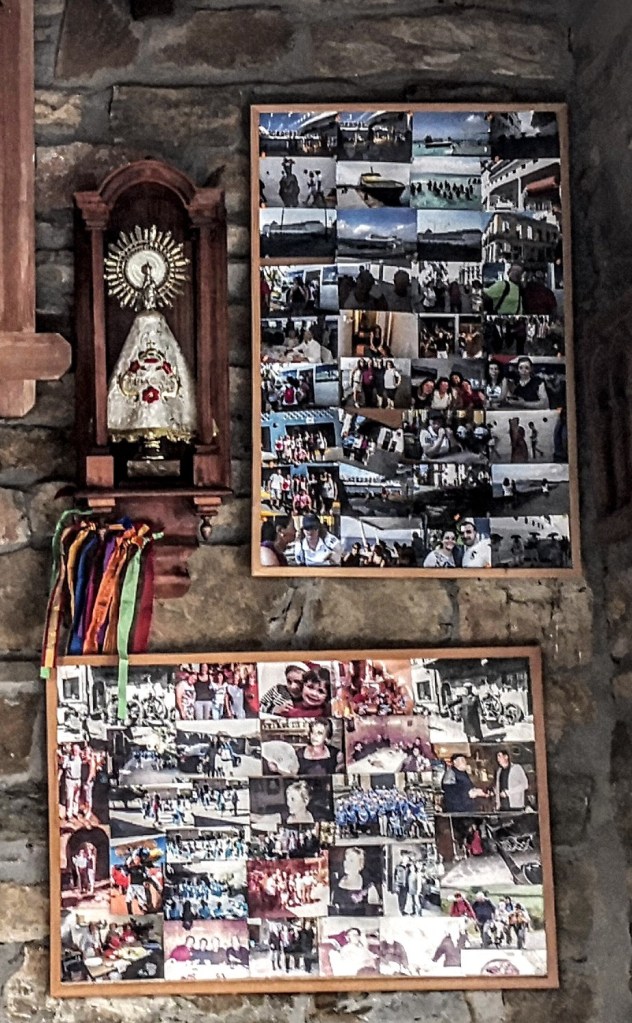 Alvorens aan te vangen spring ik eerst even binnen bij de naburige albergue voor proviand voor onderweg. De portretten van pelgrim-passanten lachen je toe.