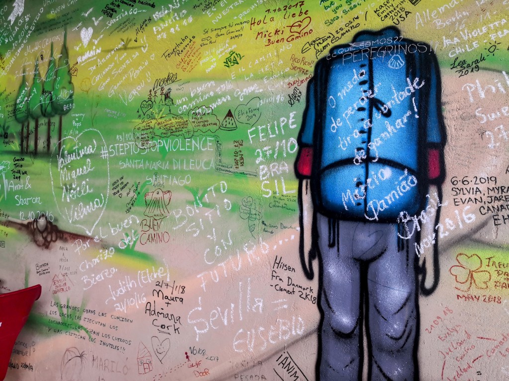 Na Ponferrada rijden we door de El Bierzo streek met fruitbomen en wijnvelden. Onderweg hou ik halte in een lokale bar voor een verfrissing. Op de muren prachtige kleurrijke tekeningen met handtekeningen van pelgrims.