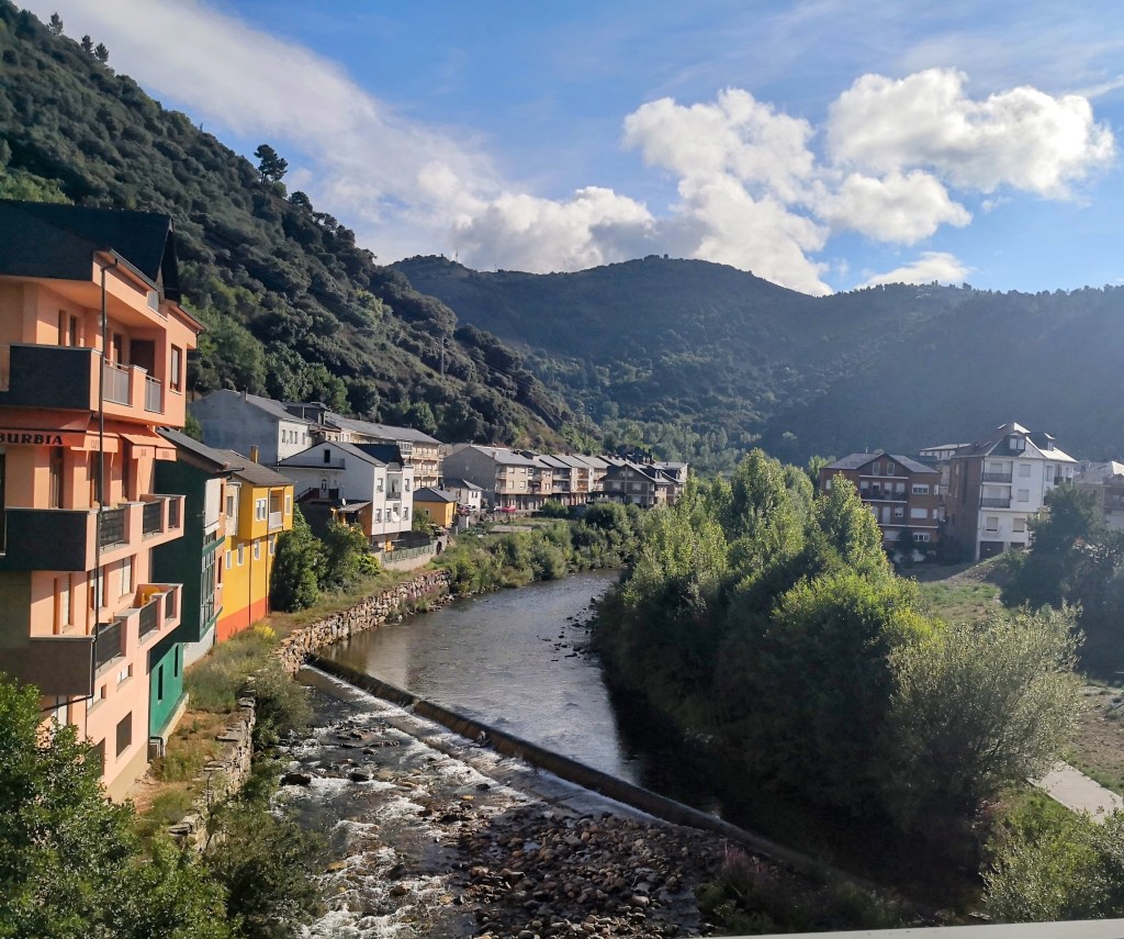 Bij de afdaling passeren we Triacastela gelegen in een prachtig gebied met riviertjes en prachtige bosrijke hellingen.