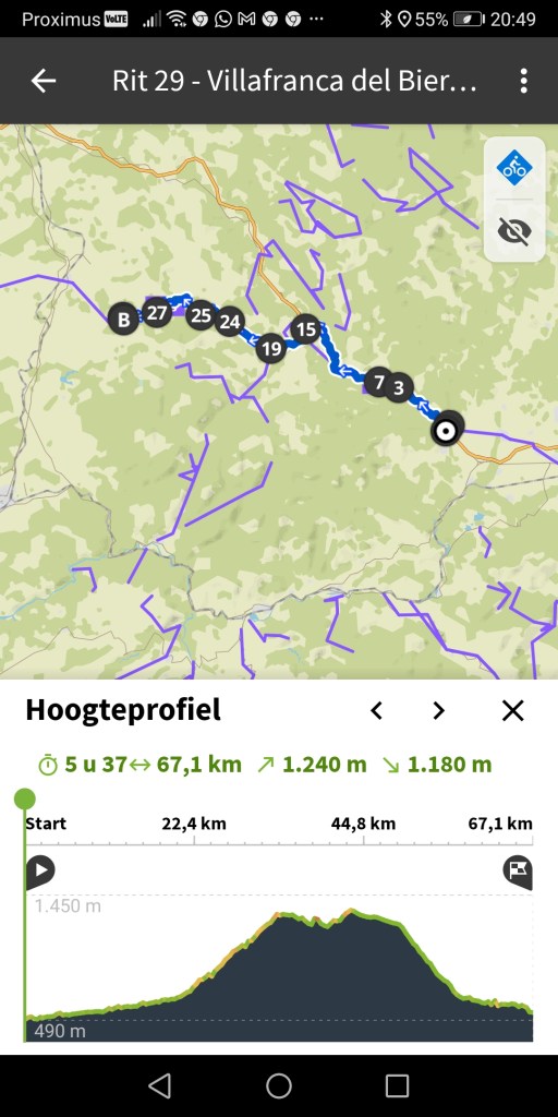 28 juni 2021: Vandaag rit gepland van 56,6 km. Finaal heb ik 59,4 km afgelegd. Dit alles op een hoogte van 800 tot 1000m.