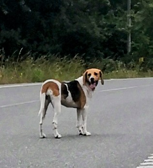 Ben in eerste instantie wel beducht omdat de hond niet begeleid is. Stel wel vast dat zij een identiteitsbewijs rond de nek draagt en dat zij zeker niet agressief is.