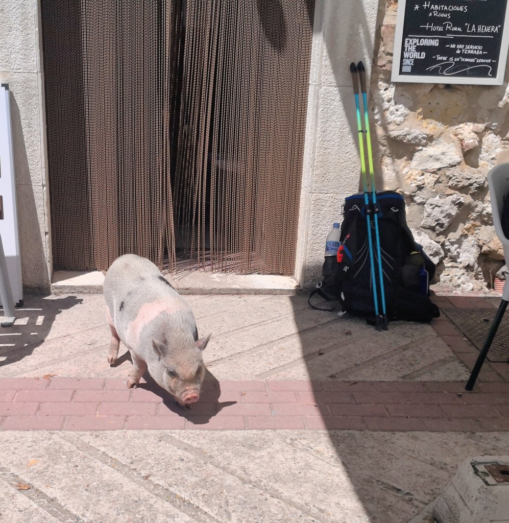 We doorkruisen enkele rustige dorpjes die elk met hun mogelijkheden de aandacht opzoeken van de pelgrim. Een primitieve bar op onverwachte plaatsen, een lokkende albergue die met alle Caminoattributen passanten hoopt te verleiden
