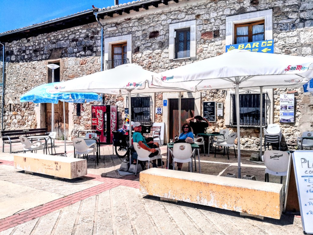 Ik volg voornamelijk de Caminoroute en doorkruist Tardajos, Rabé de las Calzadas, Hornillos del Camino, Hontanas, Castrojeriz, Itero de la Vega, Boadilla del Camino. Het is niet steeds comfortabel fietsen over de hobbelige gravelwegen, maar tussendoor wat dichter bij de stappers zijn motiveert me. Ben anders erg alleen onderweg en zo voel ik toch verbondenheid. Al is het maar een simpele groet “Buenos Camino”.
