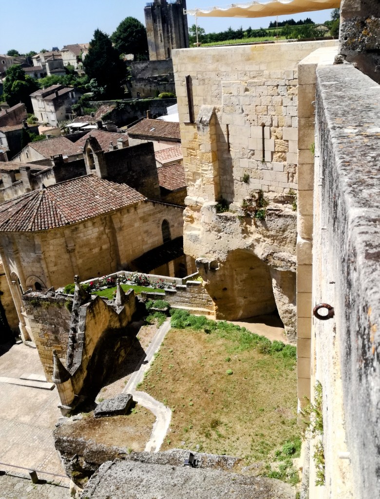 Monolitische kerk of de Eglise Monolithe, wil zeggen dat de ruimte uitgehouwen is uit één rots. Op de heuvel staat de bijbehorende losse toren. Het is zowat de grootste kerk van zijn soort in Frankrijk en werd gebouwd tussen de 9e en 12e eeuw. Omdat de toegangspoort niet prestigieus genoeg was, heeft men deze vervangen in de 14e eeuw. Jammer genoeg werd de kerk gebruikt als opslagplaats van salpeter tijdens de Franse Revolutie en zijn alle frescoβs sindsdien verdwenen.