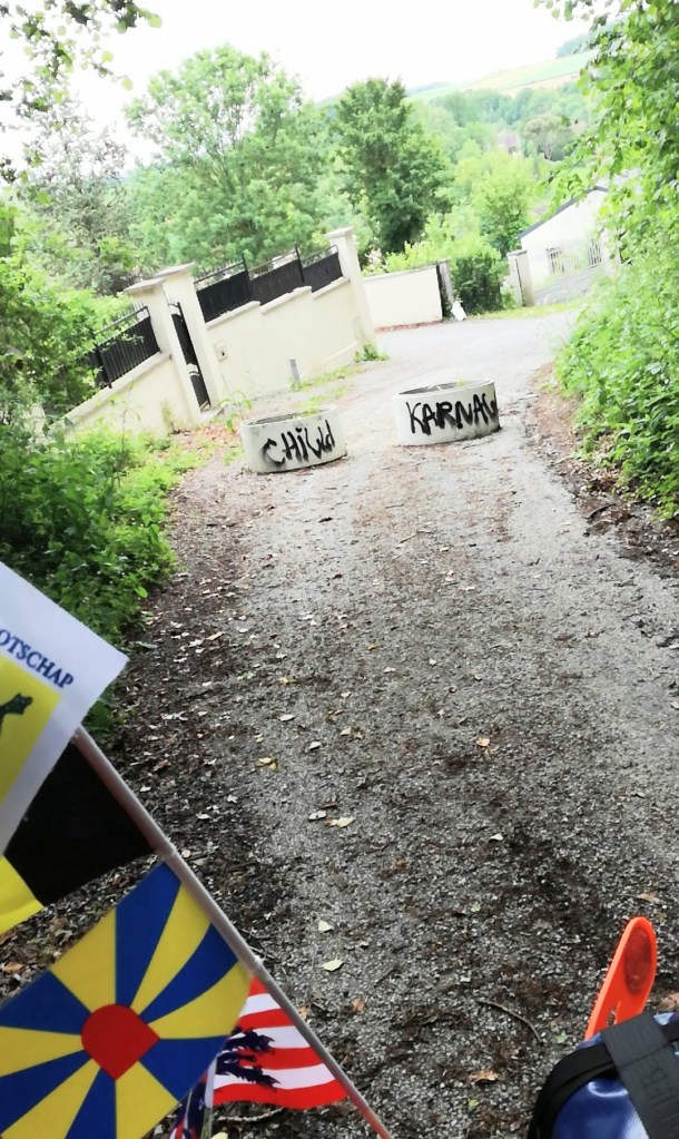 Vandaag logeer ik in een ietswat mysterieuze b@b. Op het adres aangekomen, een ietwat rommelig uitziende hondenkennel, vermoed ik dat dit hier niet de plek is. Een wat hinkende nors uitziende dame, zegt me maar te volgen, het is maar 3 km verder. Na een “wilde achtervolging”, stopt ze voor een eerder bouwvallig uitziende boerderij.” We zijn er”zegt ze me. “Hier ben je eigenlijk gans alleen, alleen op het bovenverdiep woont nog een jong koppeltje”. En ja alles is meer dan in orde en ik kan zelfs stoofvlees met aardappeltjes opwarmen. Klein incidentje: in de slaapkamer stonden 2 bedden. Bij de eerste waar ik effe wou gaan opzitten, zakte ik er door, beentjes in de lucht. De andere bedstee bleek ok.